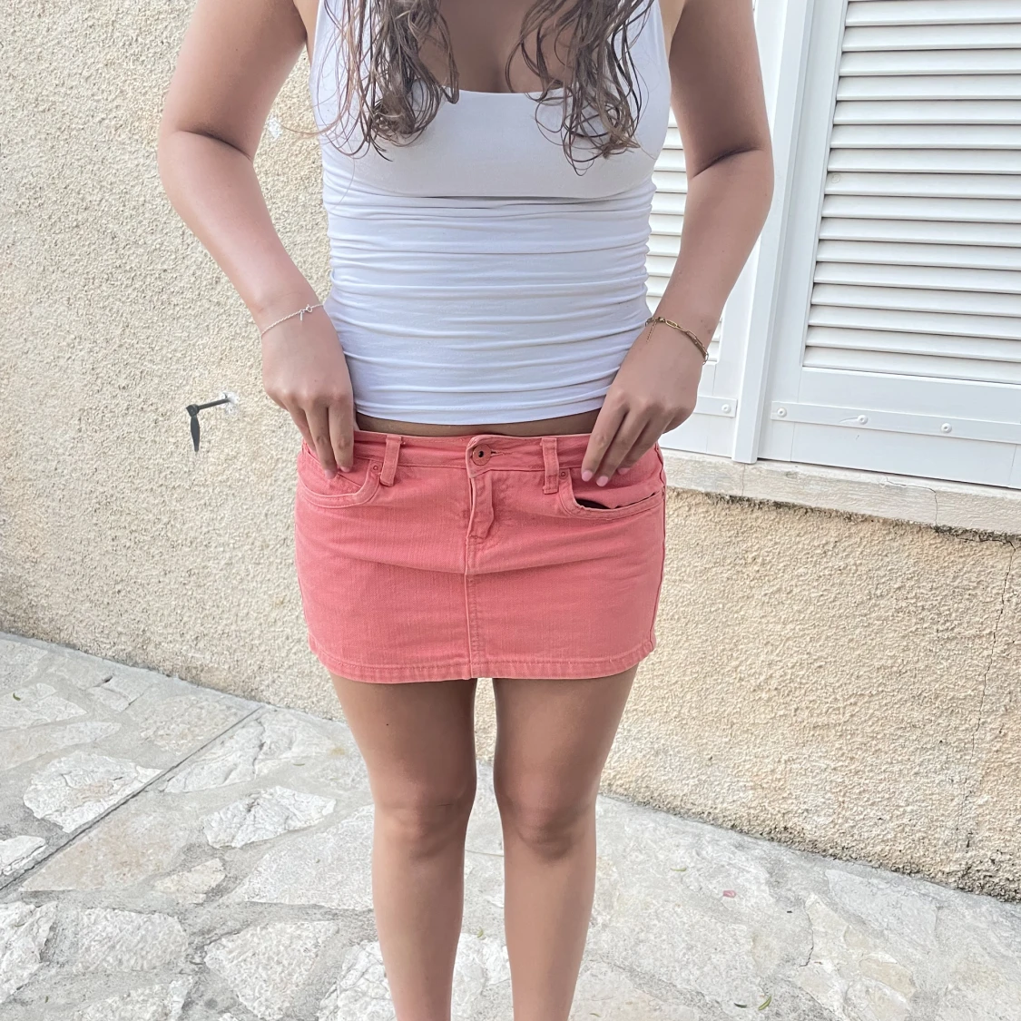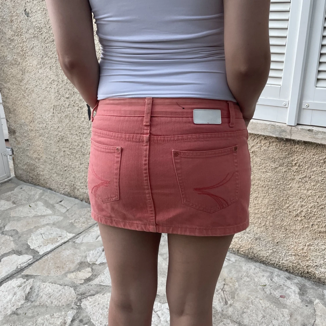 Så snygg mini jeans kjol i en så snygg korallfärg❤️❤️