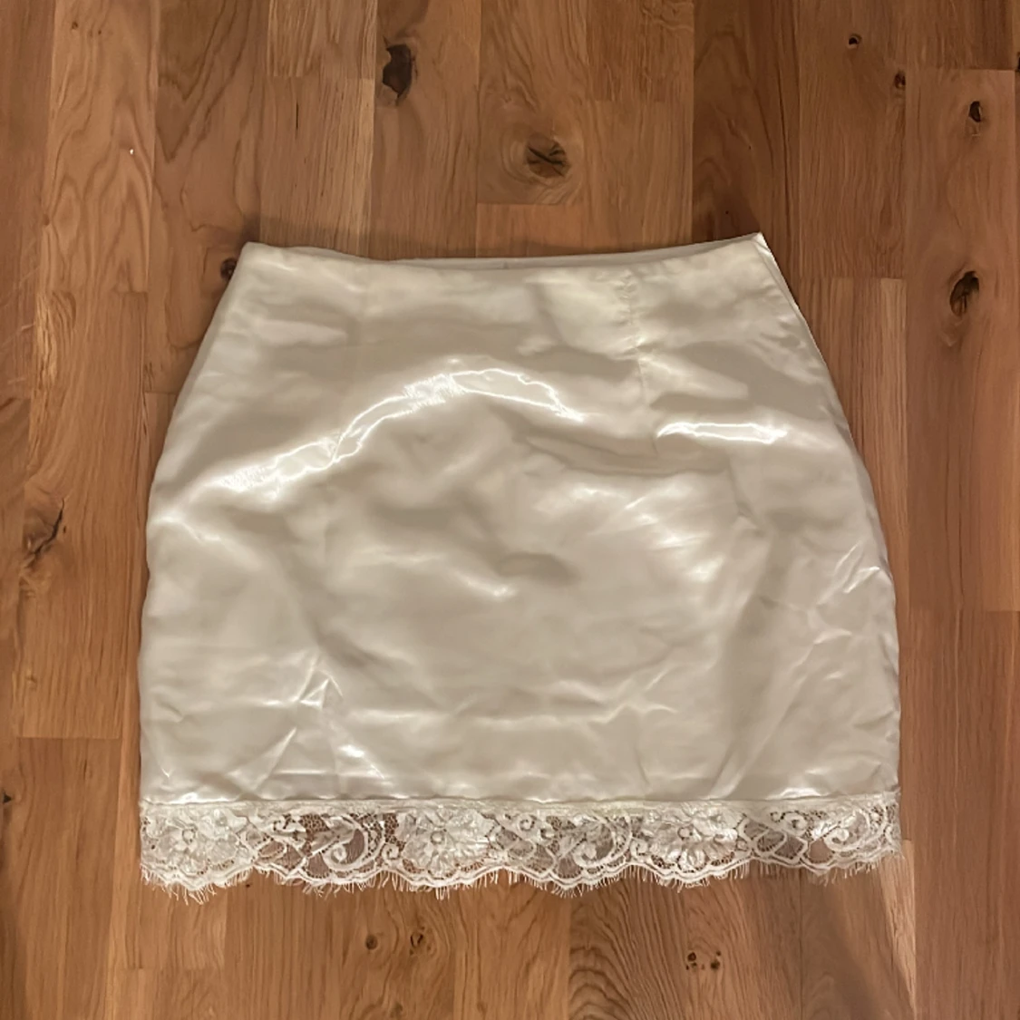 Så fin siden kjol med spets detaljer och slit, aldrig använd💕