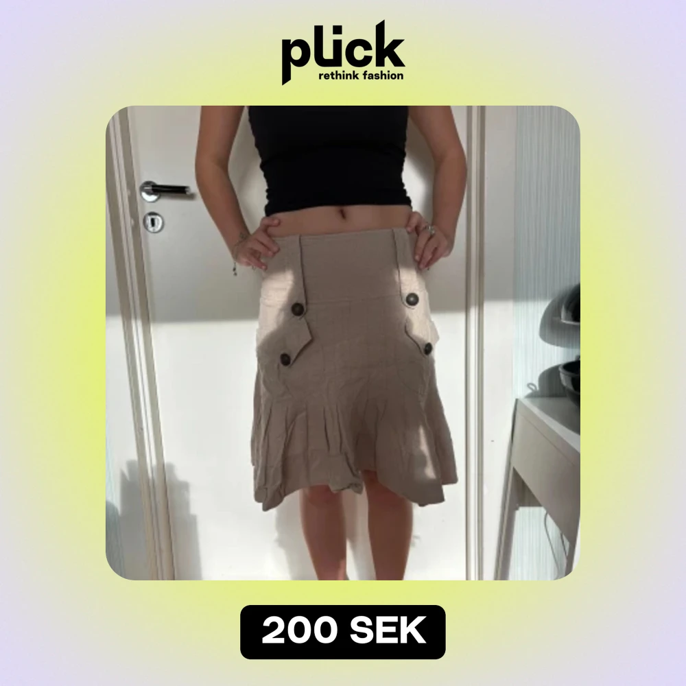 Beige kjol som går ner till knäna. Lågmidjad kjol med knappar. Säljer pågrund av liten användning. Jättebra skick!