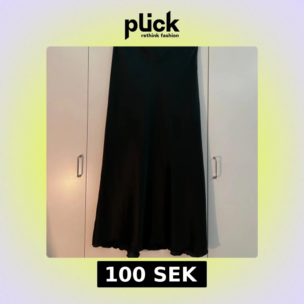 En stilren svart maxikjol i glansigt satinmaterial från lager157. Kjolen har en enkel och elegant design med lätt utställd passform och utan synliga detaljer eller mönster. Perfekt för dig som gillar minimalistisk stil. Storleken är L, har används 1-2ggr.