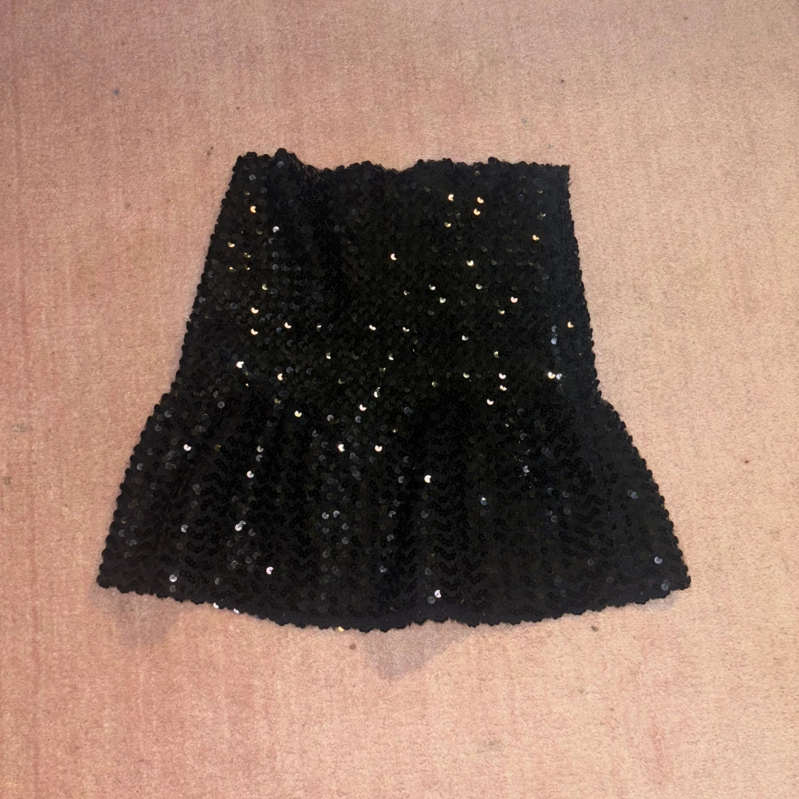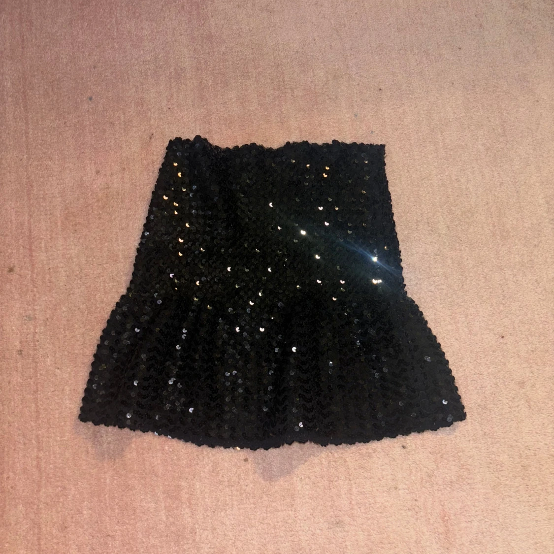 Glittrig minikjol köpt vintage i London i färg svart står ingen storlek men skulle säga att det är en S/M. Super fin och går att matcha till allt. Kjolen är i topp skick