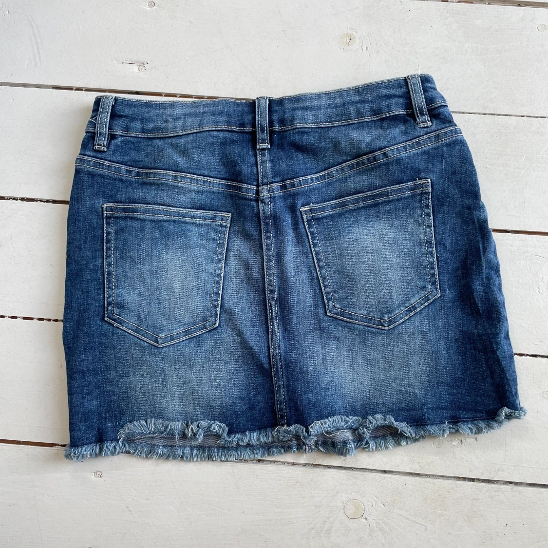 Väldigt söt jeanskjol med pärlor på! Sparsamt använd därav fint skick!