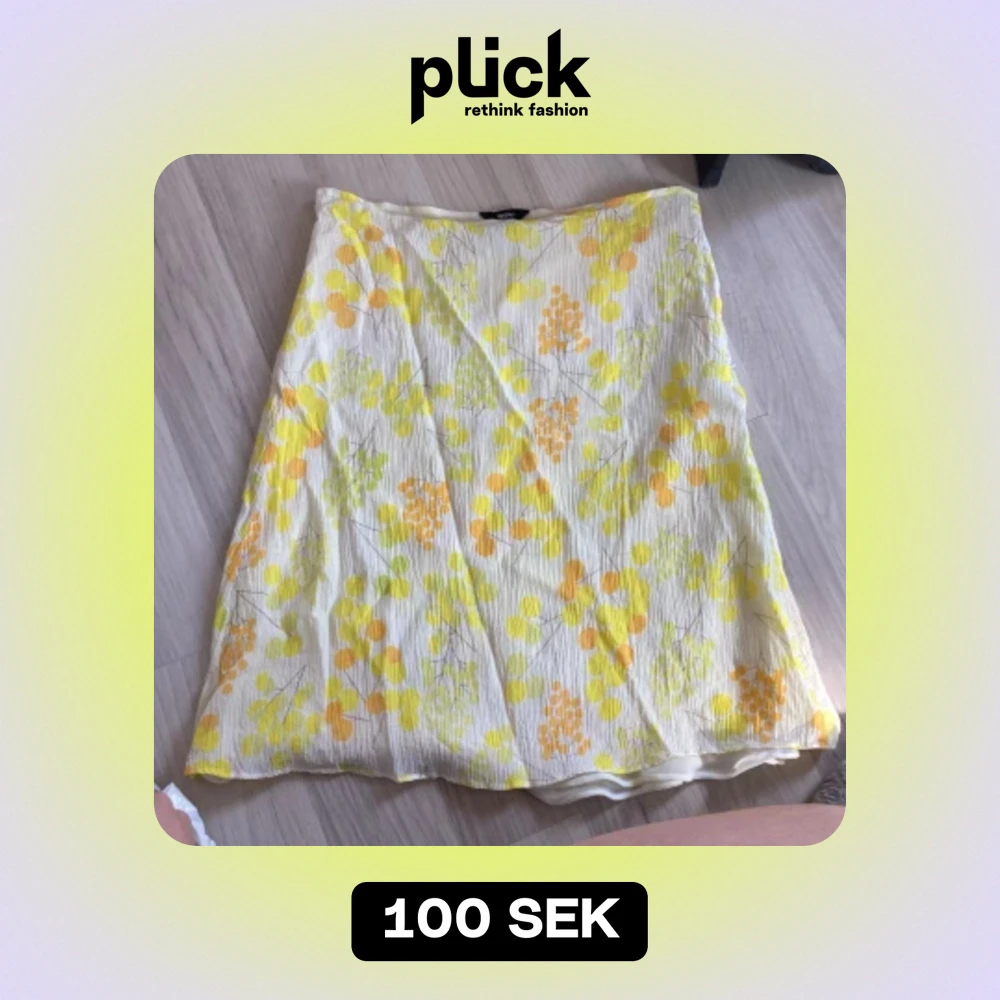 Jättesöt gul silk kjol med blommor/växter som har jätte skönt material ! Det finns en dragkedja på sidan. Perfekt till våren och sommaren och sitter jättefint💗 köpt i Spanien och helt oanvänd!