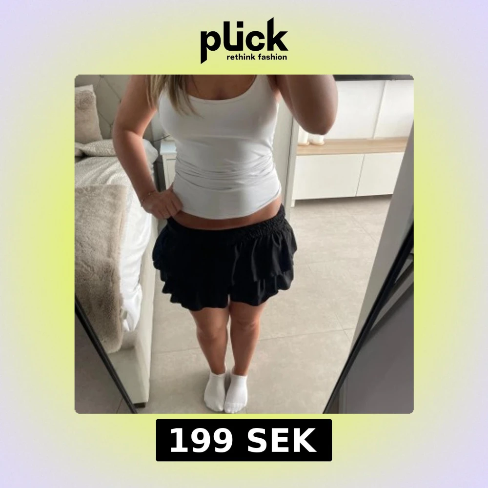 Svart kortkjol med volang och bred resår i midjan. Från meet me there, inte använd mycket!