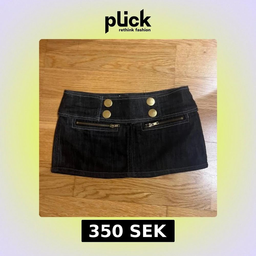 Säljer denna asfeta kjolen ifrån Stradivarius. Den har ett tjockt midjeband och coola guld-detaljer och sitter lågmidjat! Denna säljs inte längre och är o superbra skick! Bakfickorna är bara där för detalj men framfickorna fungerar 💓