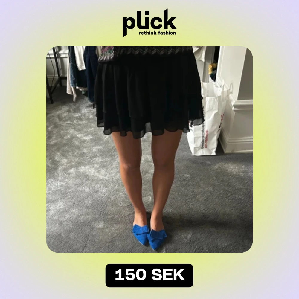 Basic svart volang kjol med strechigt material och fin passform. Lite lång men går mycket bra att vika upp om man skulle vilja det. Passar till alla snygga outfits.