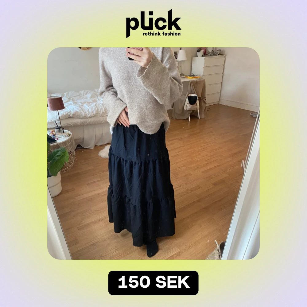 Snygg svart långkjol med flera lager som ger en fin volym. Kjolen har en avslappnad passform och är perfekt för en stilren look. Den är enkel att matcha med olika toppar och accessoarer🖤