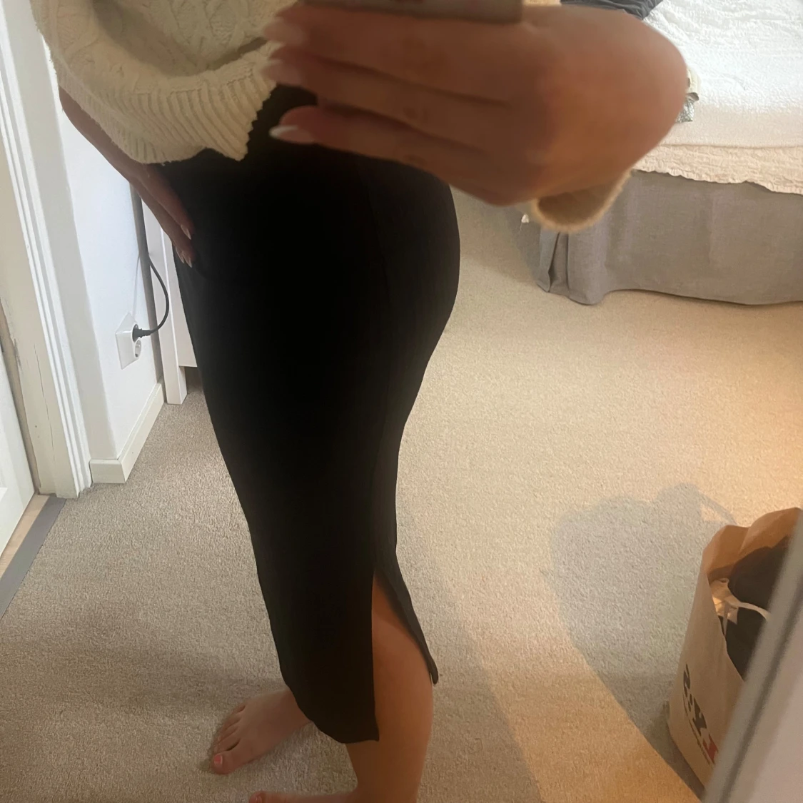 Svart kjol i skönt material med en slits vid sidan🌸