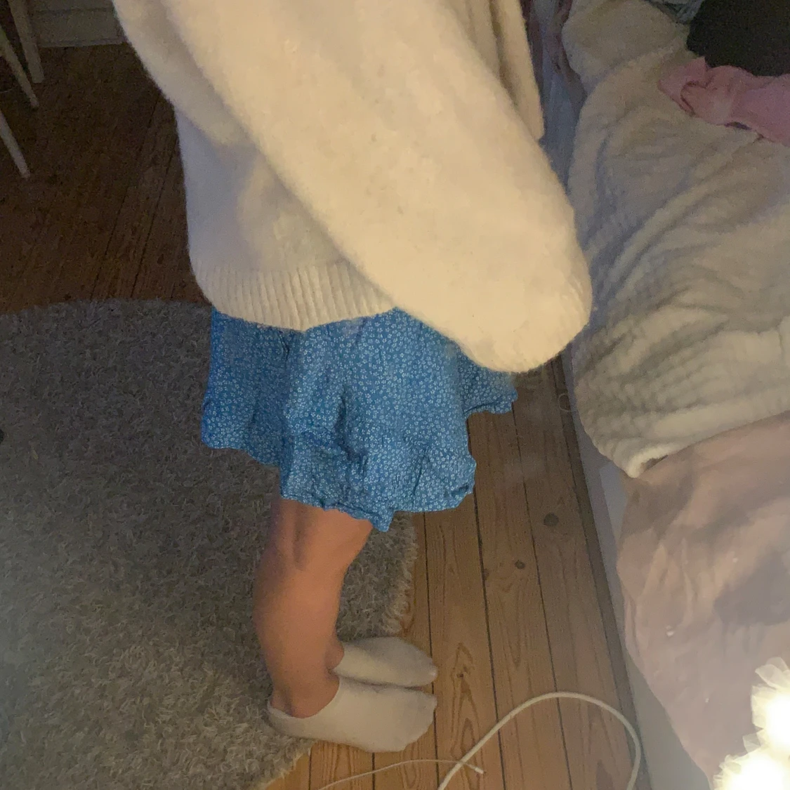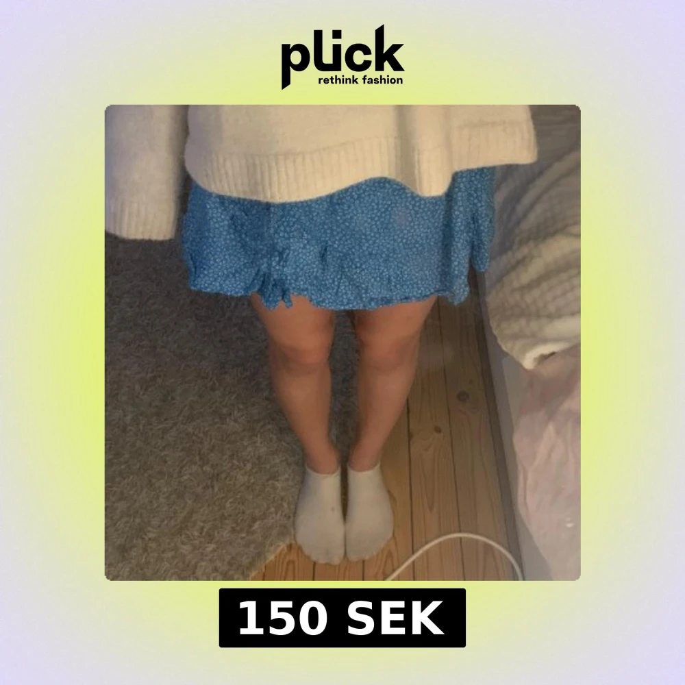 Söt blå kortkjol med blommigt mönster och volangdetaljer, från Bikbok. 💕 inga slitningar och använd ett fåtal gånger