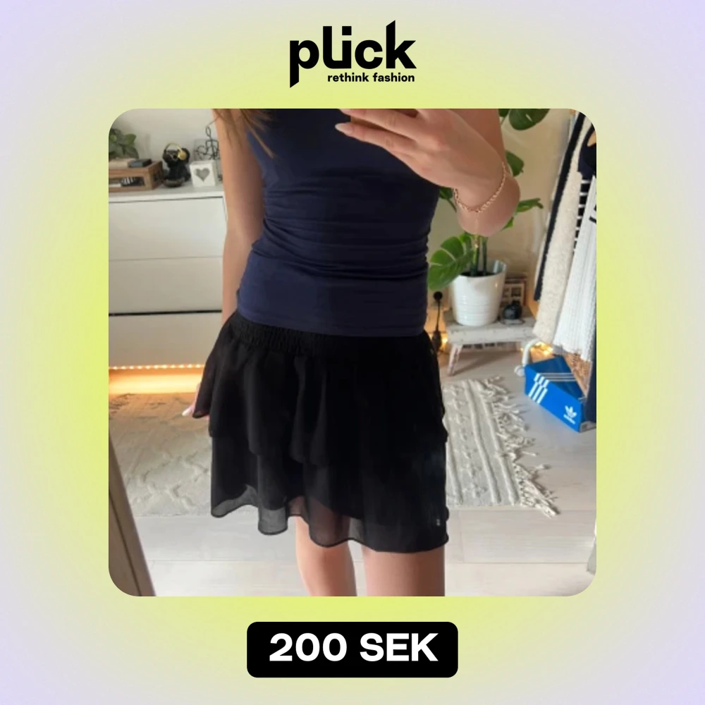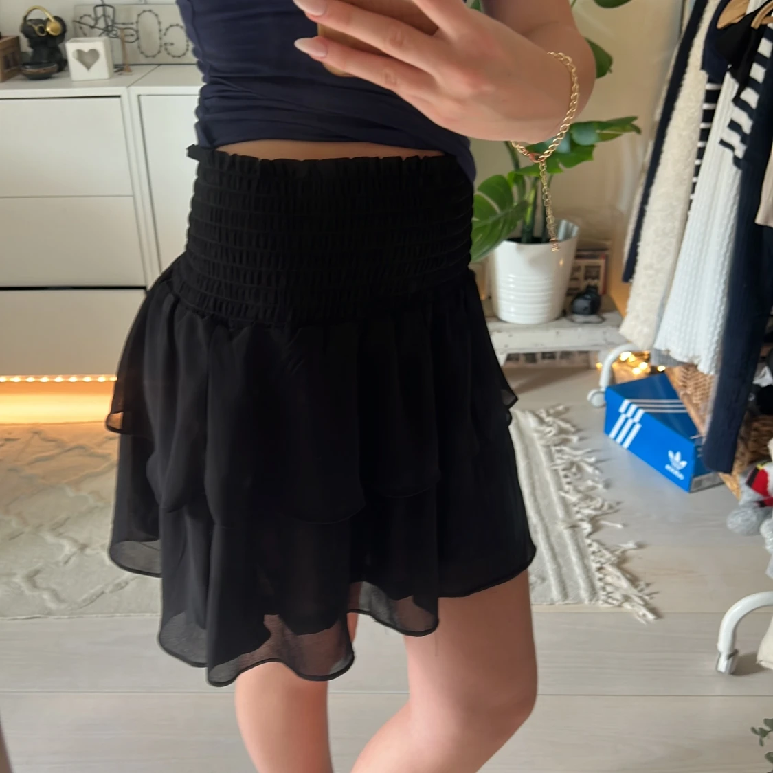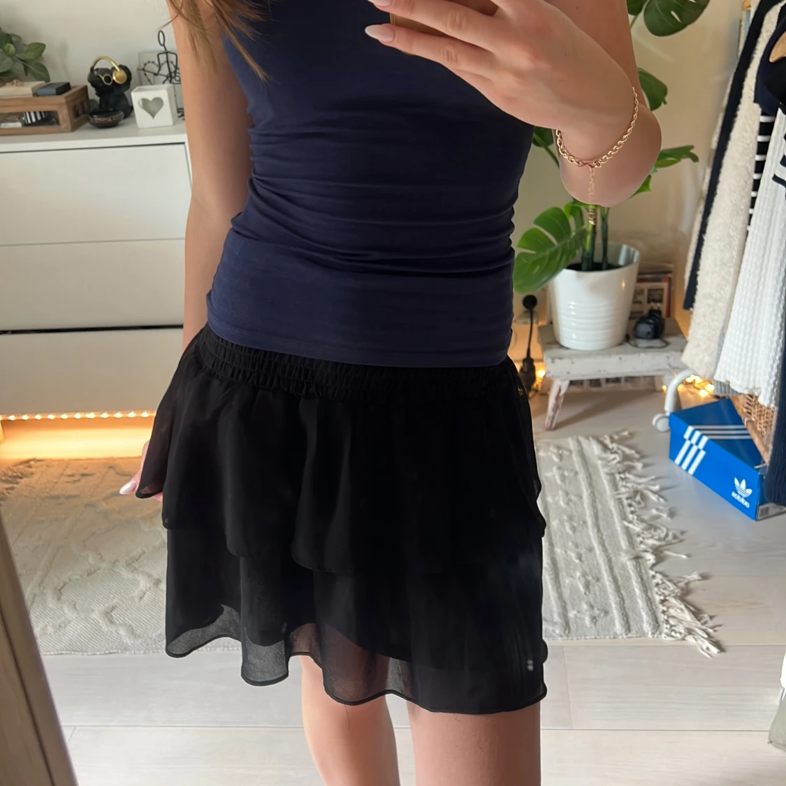 Super fin svart volang kjol som inte kommer till användning längre💓I storlek XXS men skulle säga att den passar XS-S också🤠Bra skick. Hör av dig vid fler frågor eller bilder🤗