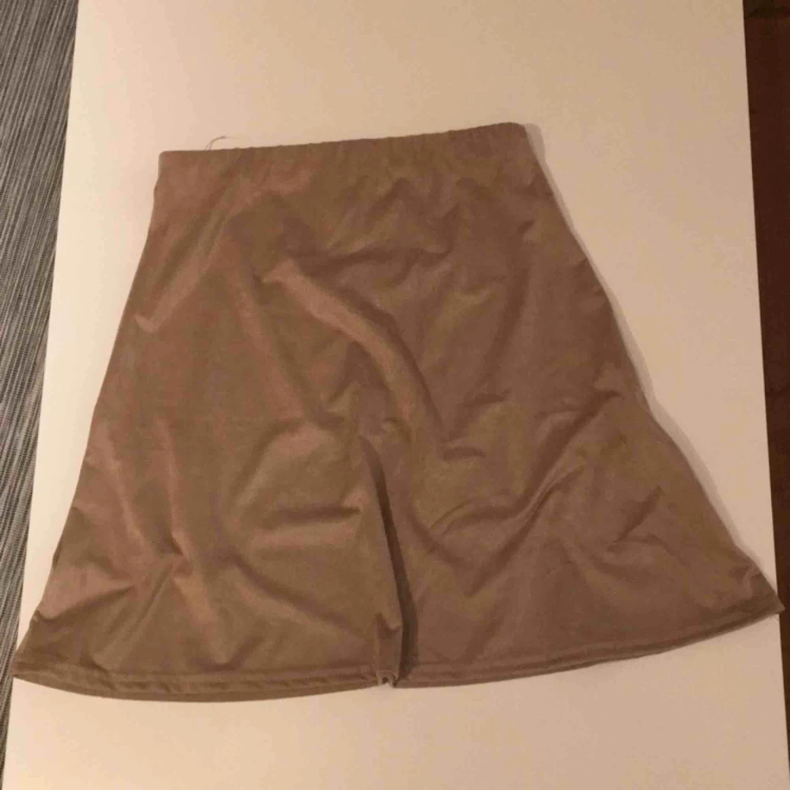 Beige kjol från Nelly trend i mockaimitation. Betalas med swish, 20kr +frakt. Fråga gärna frågor!