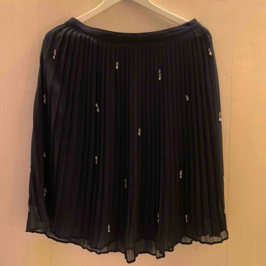 Marinblå knälång plisserad kjol från Zara. Ett fåtal stenar sitter löst, men inget som inte lite sytråd och nål kan lösa! Jag kan mötas upp i Borås, eventuellt Göteborg. Annars står köparen för frakten.
