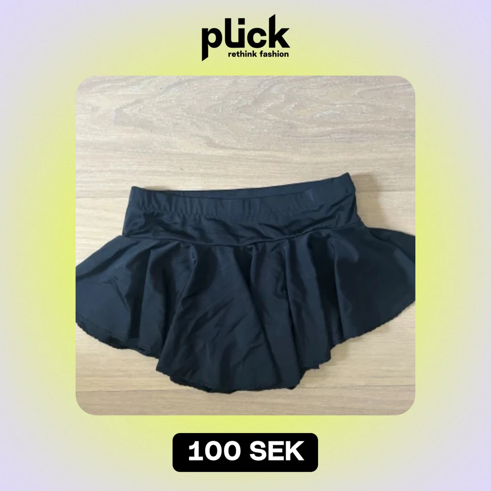 Jätte söt konståknings kjol i svart med insydda shorts. Kort och perfekt att träna i. Köpt secondhand så märke/storlek vet jag inte då lapparna är borta.