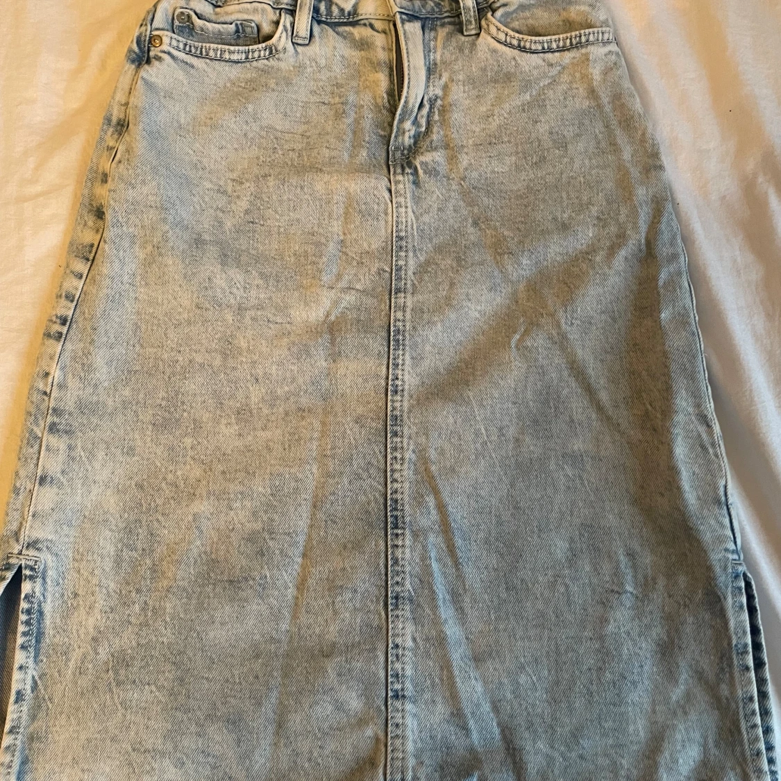 Jätte fin kort jeans kjol som går ner till knän. Bra skick och använd tre gånger. ✨pris kan diskuteras✨🩵