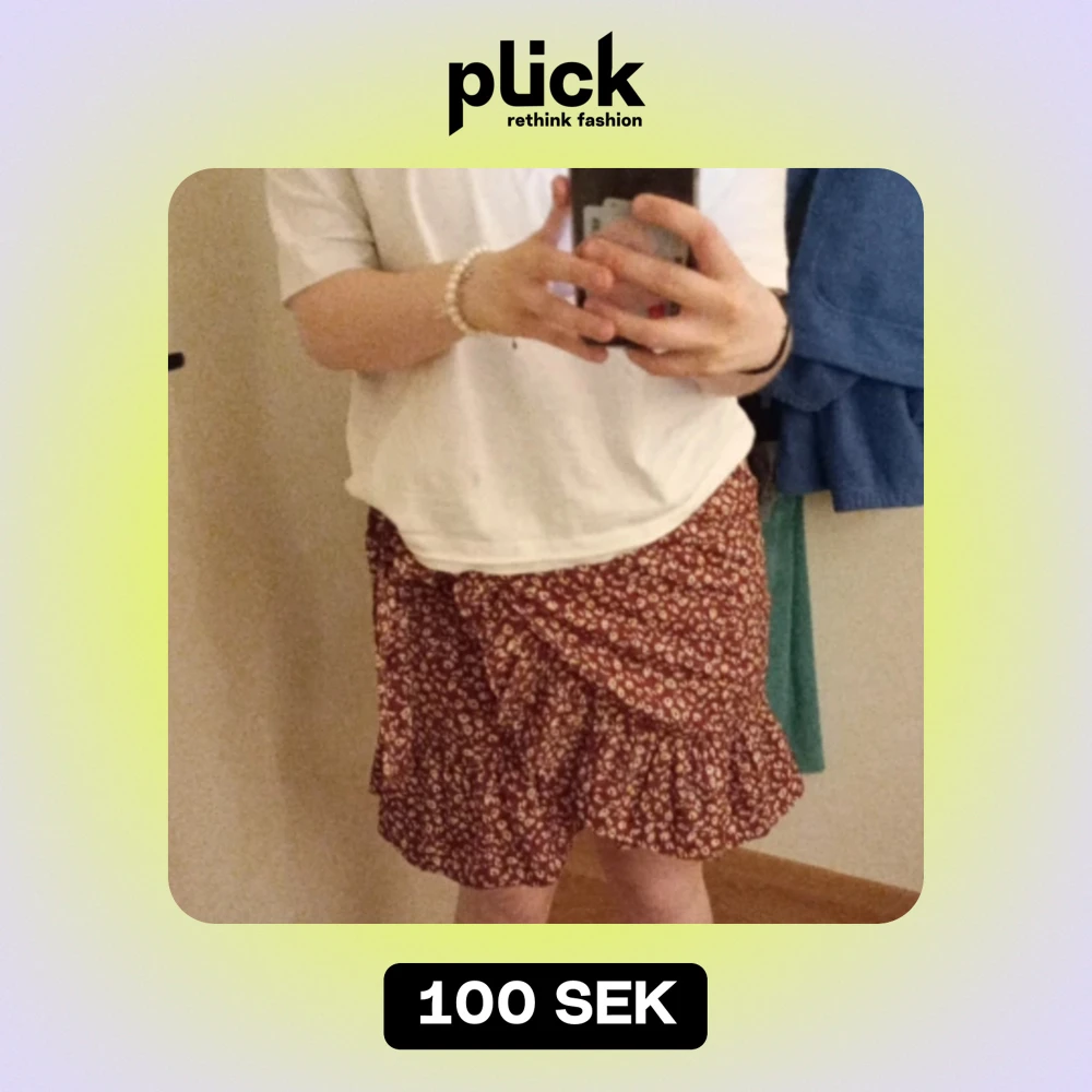 Kort omlott brun/röd kjol med fina vita blommor. Från Only. Använd enstaka gånger. Storlek S, lite för liten för mig.