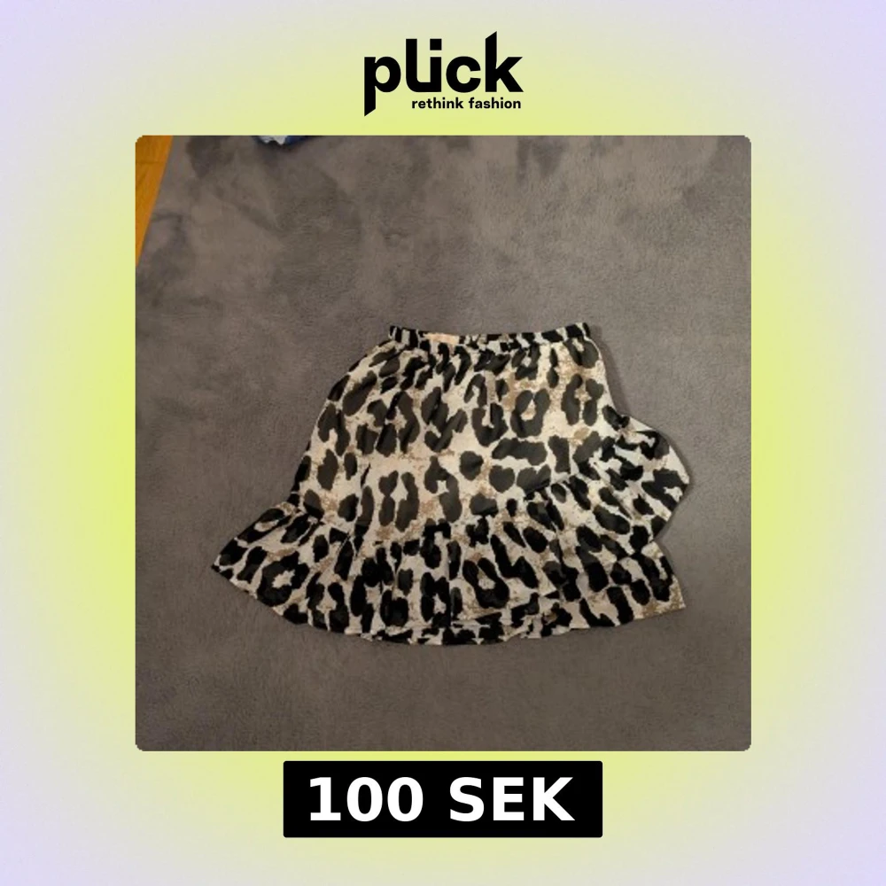 Snygg kort kjol med leopardmönster i svart, beige och vitt. Kjolen har volang nertill och resår i midjan för en bekväm passform.