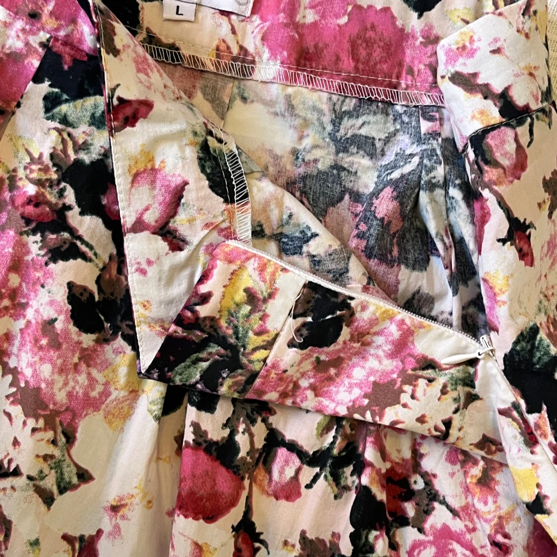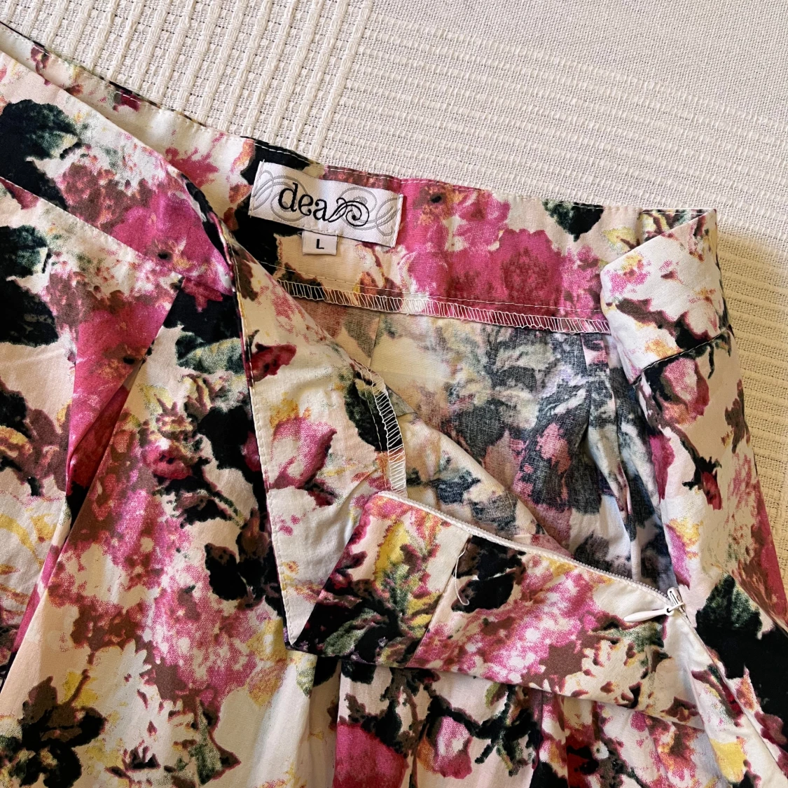 Superfin kortkjol från Dea med blommigt mönster i rosa, svart, beige och vitt. Kjolen har veckad design och dragkedja i sidan för enkel påklädning. Perfekt för dig som gillar färg och vill sticka ut lite extra.