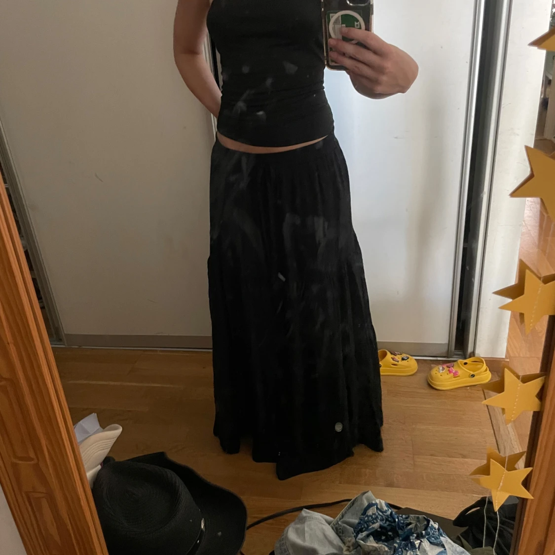 Säljer en svart långkjol! Storlek L men passar mig perfekt som använder xs/s