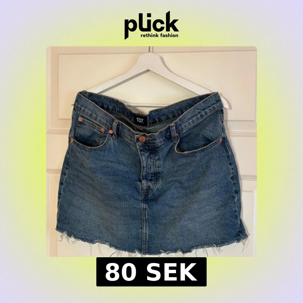 Snygg blå jeanskjol från 157 Maddy i storlek L. Klassisk femficksmodell med rå, fransig kant nertill för en cool vibe. Kjolen har normal passform och är perfekt till sneakers eller boots. Enkel att matcha med både t-shirt och hoodie.