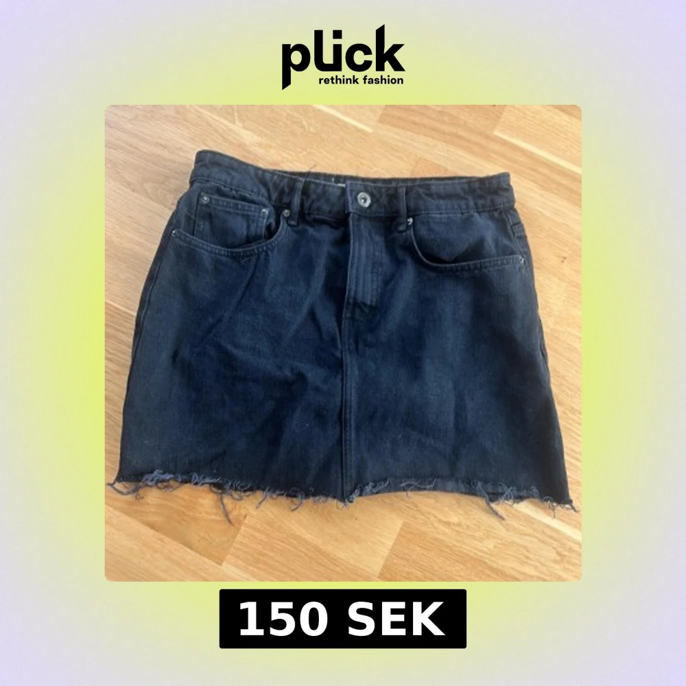 Cool svart jeanskjol med rå, fransig nederkant och klassiska fickor fram. Kjolen har bälteshällor och knappstängning. Perfekt för dig som gillar en avslappnad och edgy stil.