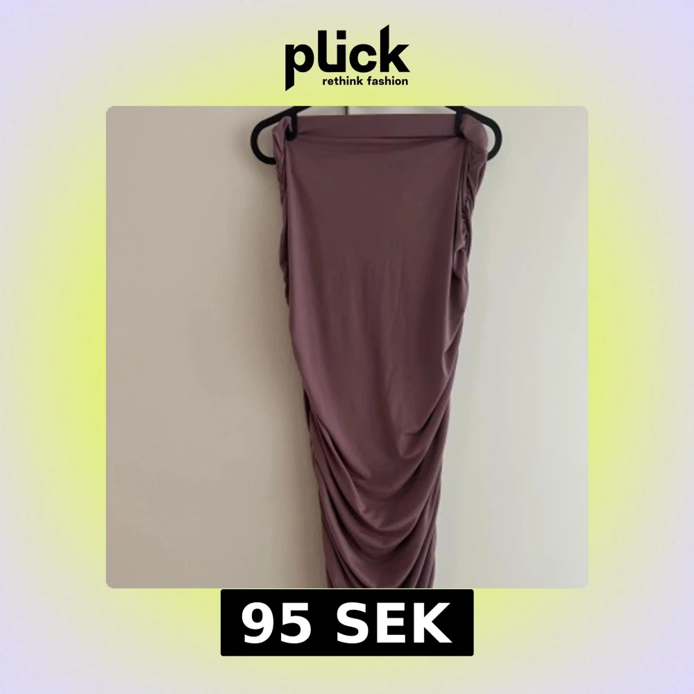 Säljer en lång, lila kjol med snygg drapering längs sidorna. Klänningen har en elegant, figurnära passform och är ärmlös. Perfekt för dig som vill sticka ut med en stilren look. Fint skick! Storlek L.