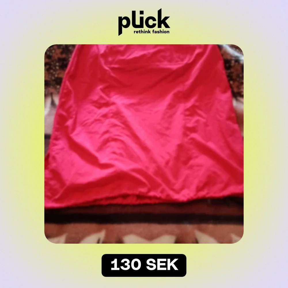 Fin röd kjol med ficka fram samt dragkedja på sidan och drag snöre längst ner på kjolen. Inget slitage finnes.