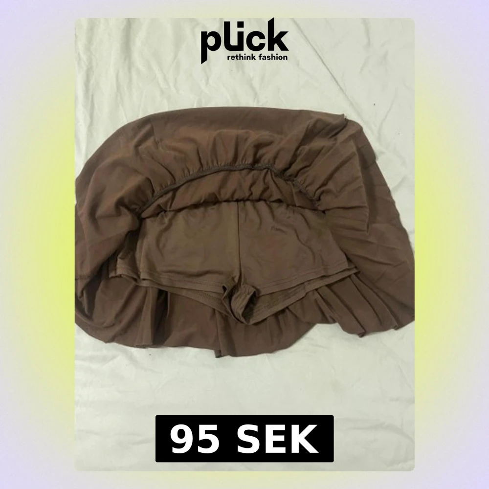 Säljer en brun kort volangkjol med inbyggda shorts. Kjolen har flera lager volanger och bred linning som ger en snygg och bekväm passform. Perfekt för dig som vill ha både stil och rörelsefrihet. Materialet känns mjukt och stretchigt.