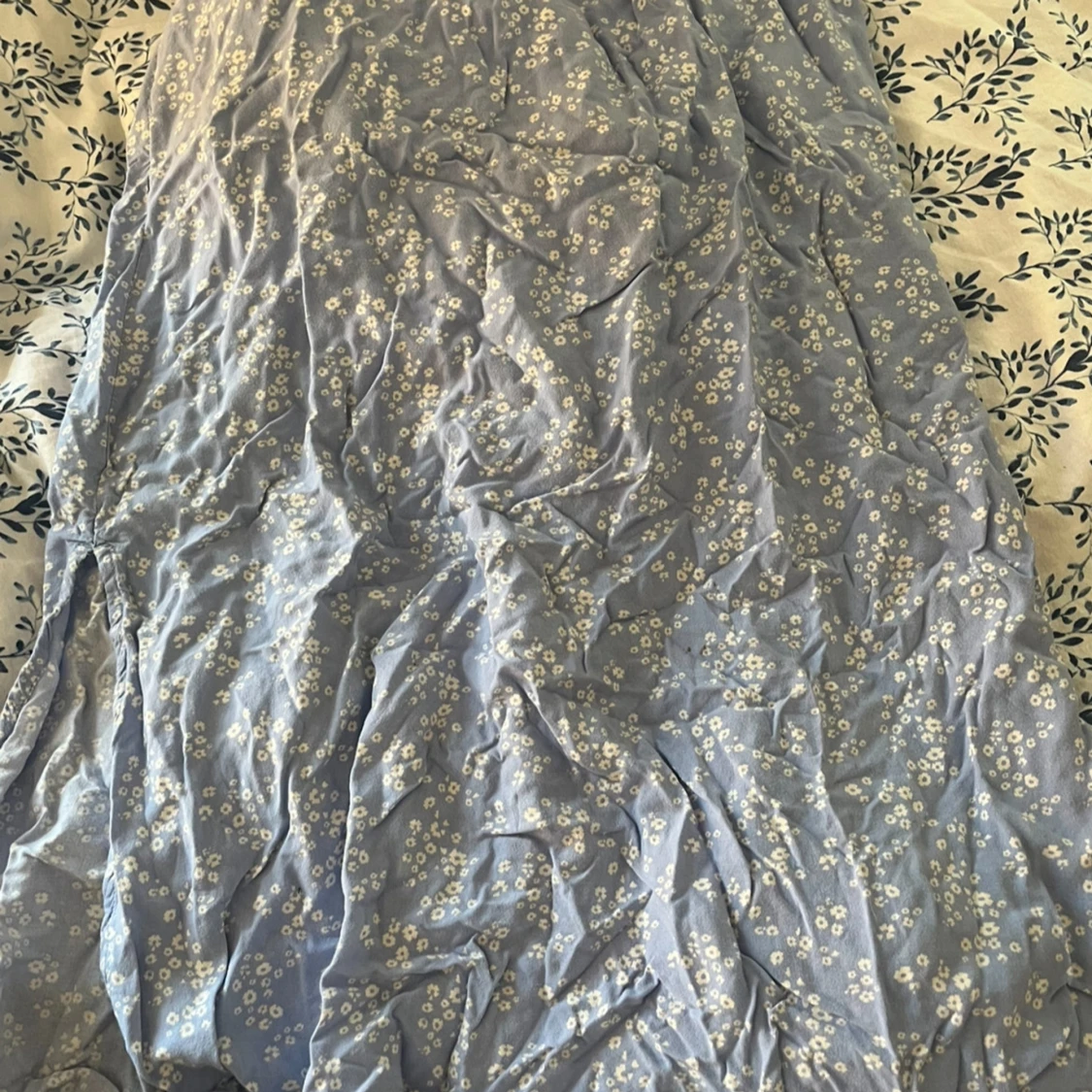 Supersöt långkjol i ljusblått från lager 157, täckt med små vita blommor. Kjolen har en elastisk midja som gör den bekväm och enkel att bära. Perfekt för dig som gillar romantiska och somriga vibes. Materialet känns mjukt och flowy.
