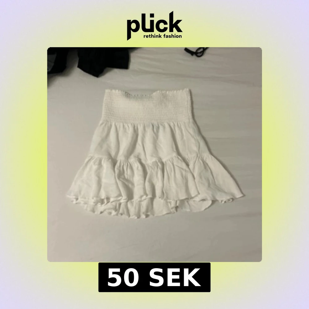 Supersöt vit kortkjol från 157 i storlek XS. Kjolen har smockad midja och flera volanglager som ger en flowy och luftig känsla. Perfekt för varma dagar och enkel att styla med crop tops eller linnen. Pris kan diskuteras🥰