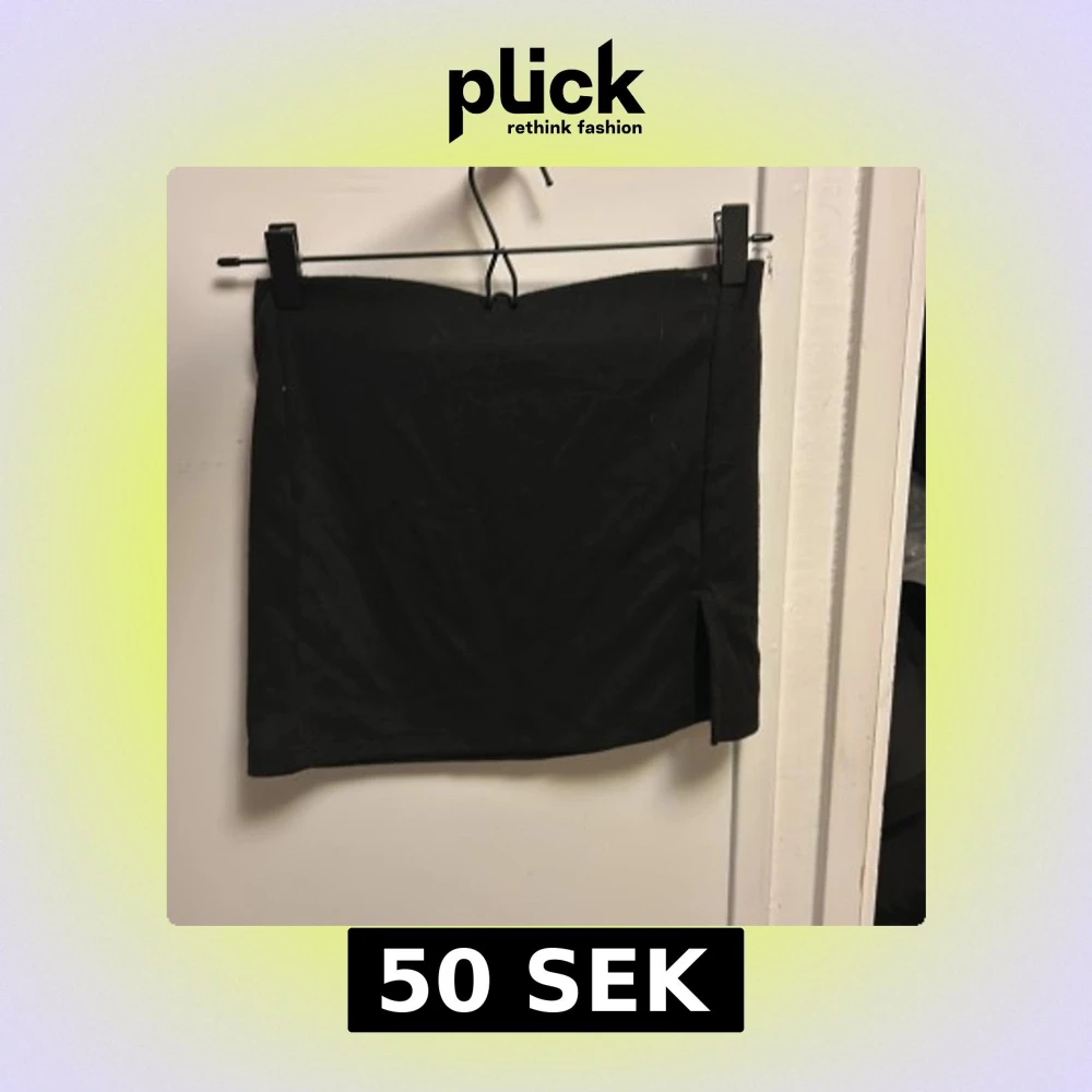 Enkel och stilren svart kortkjol från 157 i storlek XS. Kjolen har en rak passform och en liten slits på ena sidan som ger en snygg detalj. Perfekt att matcha med en crop top eller oversized hoodie.