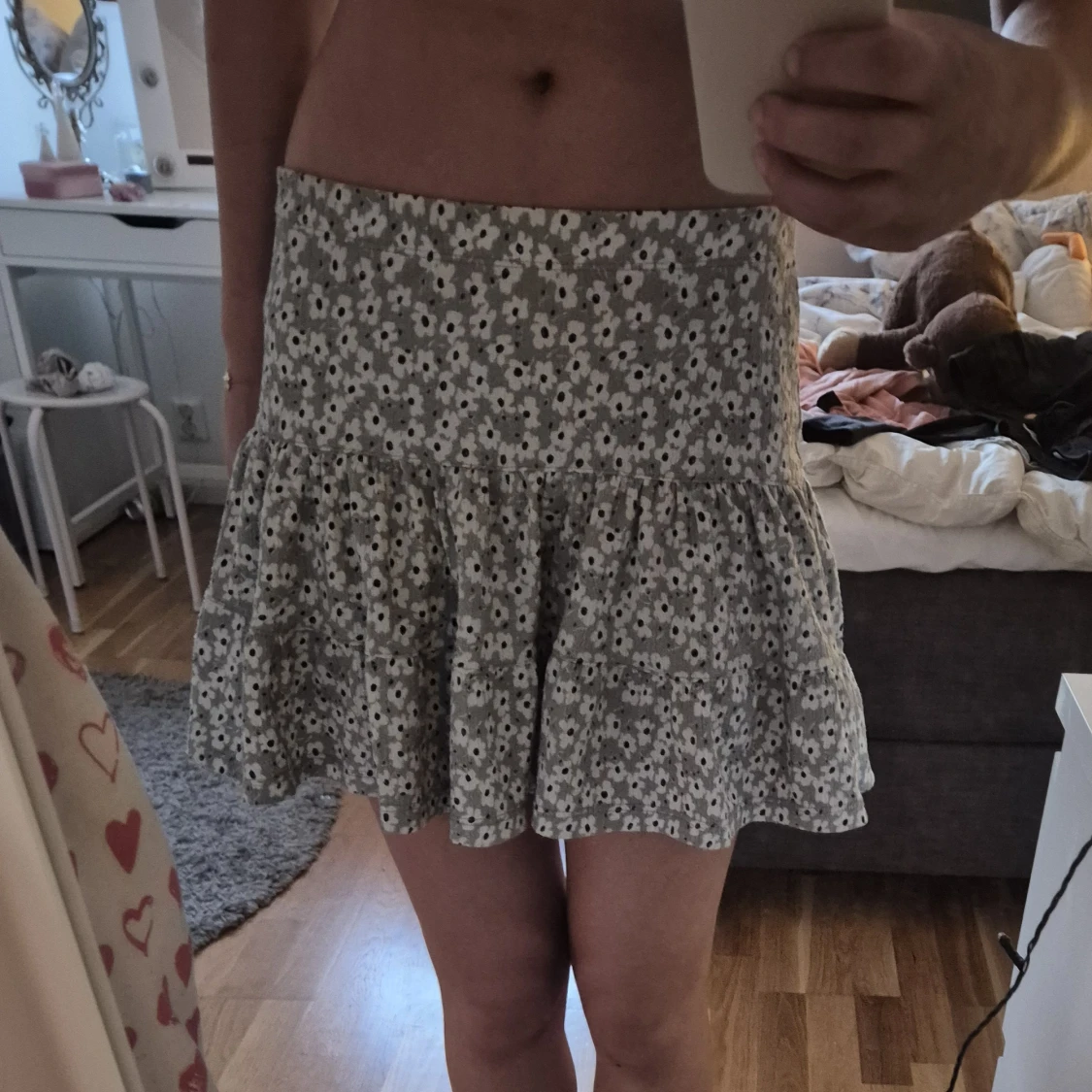 Grå/grön blommig volangkjol