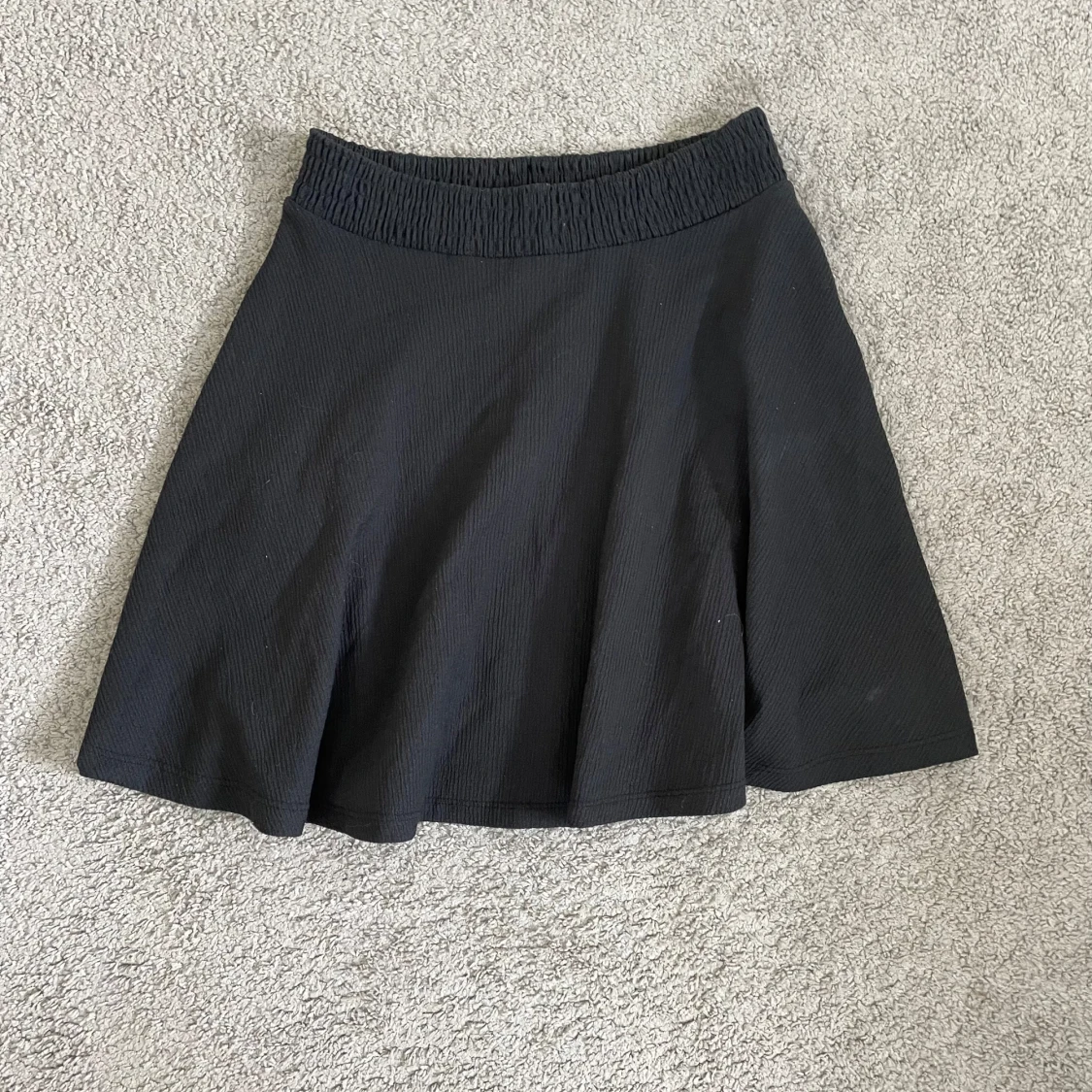 Svart kortkjol från 157 med bred resår i midjan som ger en skön och flexibel passform. Kjolen har en lätt utställd form och är tillverkad i ett mjukt, stretchigt tyg. Perfekt för dig som gillar enkel och stilren look.