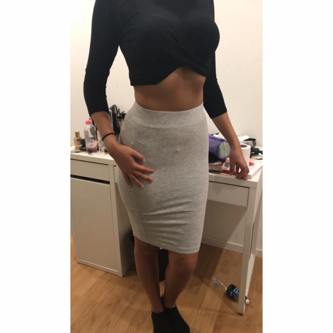 Grå kjol i storlek xs säljs för 50kr. Helt ny med prislapp på