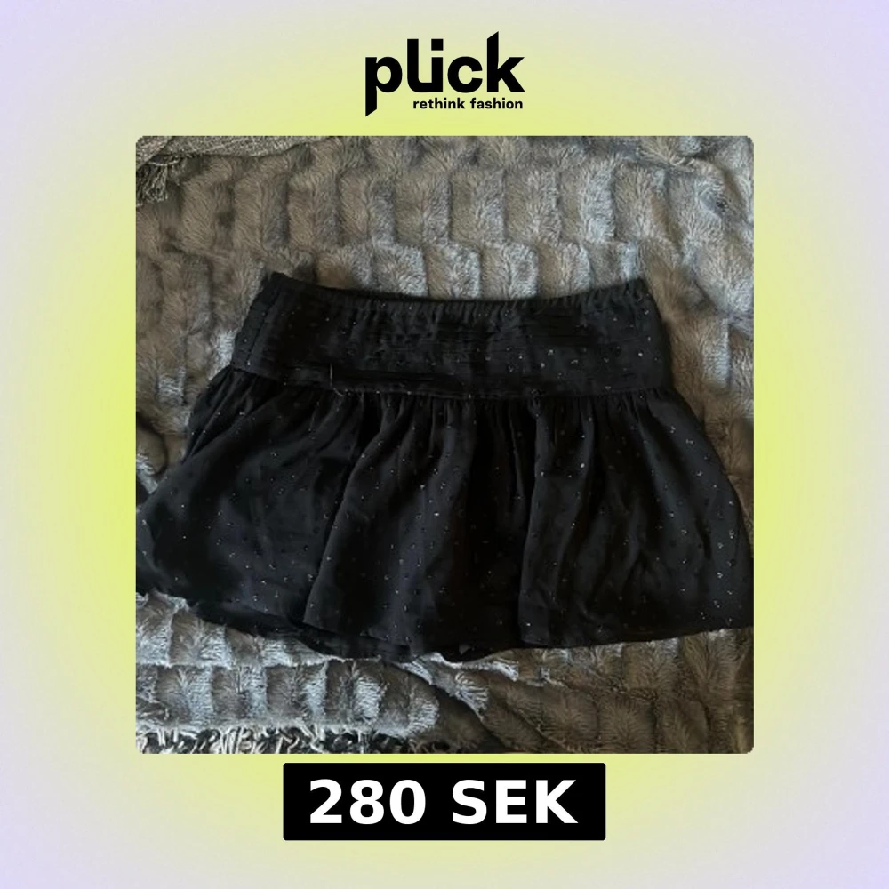 Snygg svart lågmidjad kjol med glittrande paljetter. Kjolen har en bred midja och ett lätt utställd passform som ger en fin siluett. Perfekt för att lägga till lite glamour till din outfit.