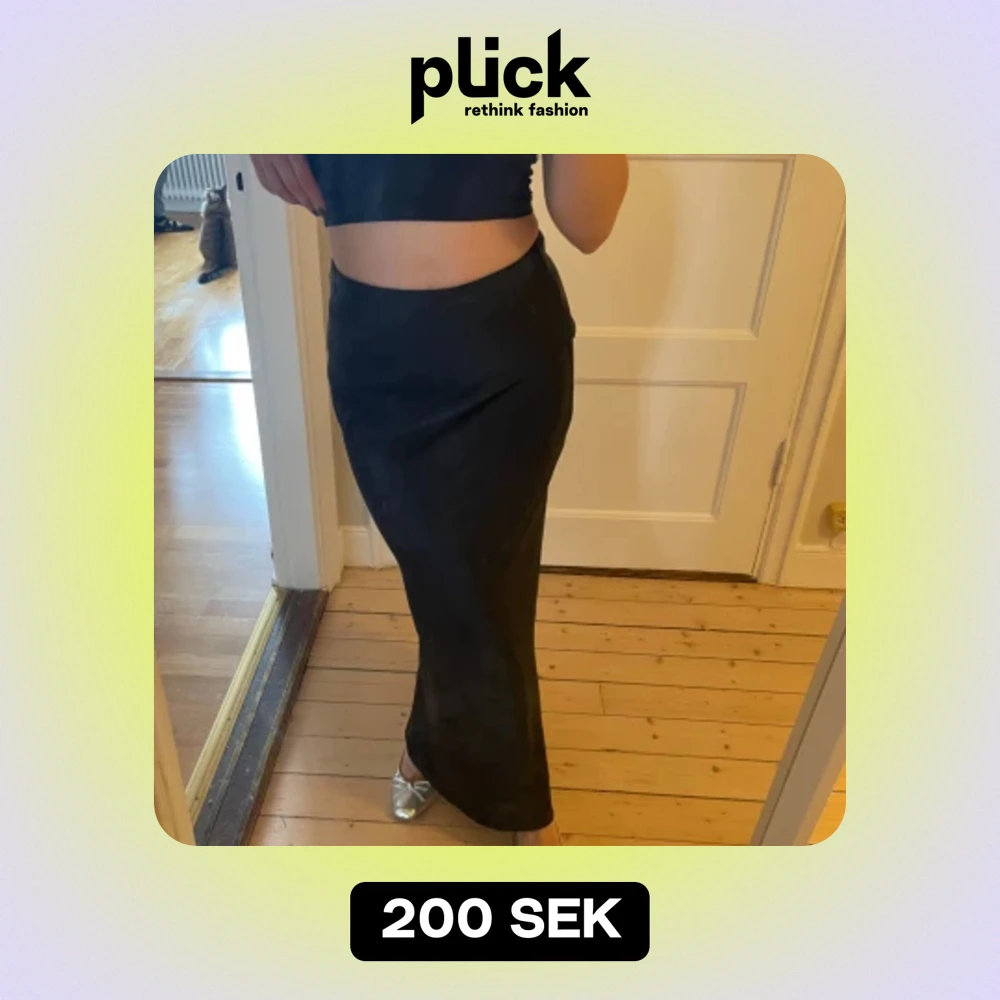 Svart satin lågmidjad maxikjol från Gina tricot i storlek xs. Helt oanvänd med lappen kvar. Passar xs-s då den är stretchig.