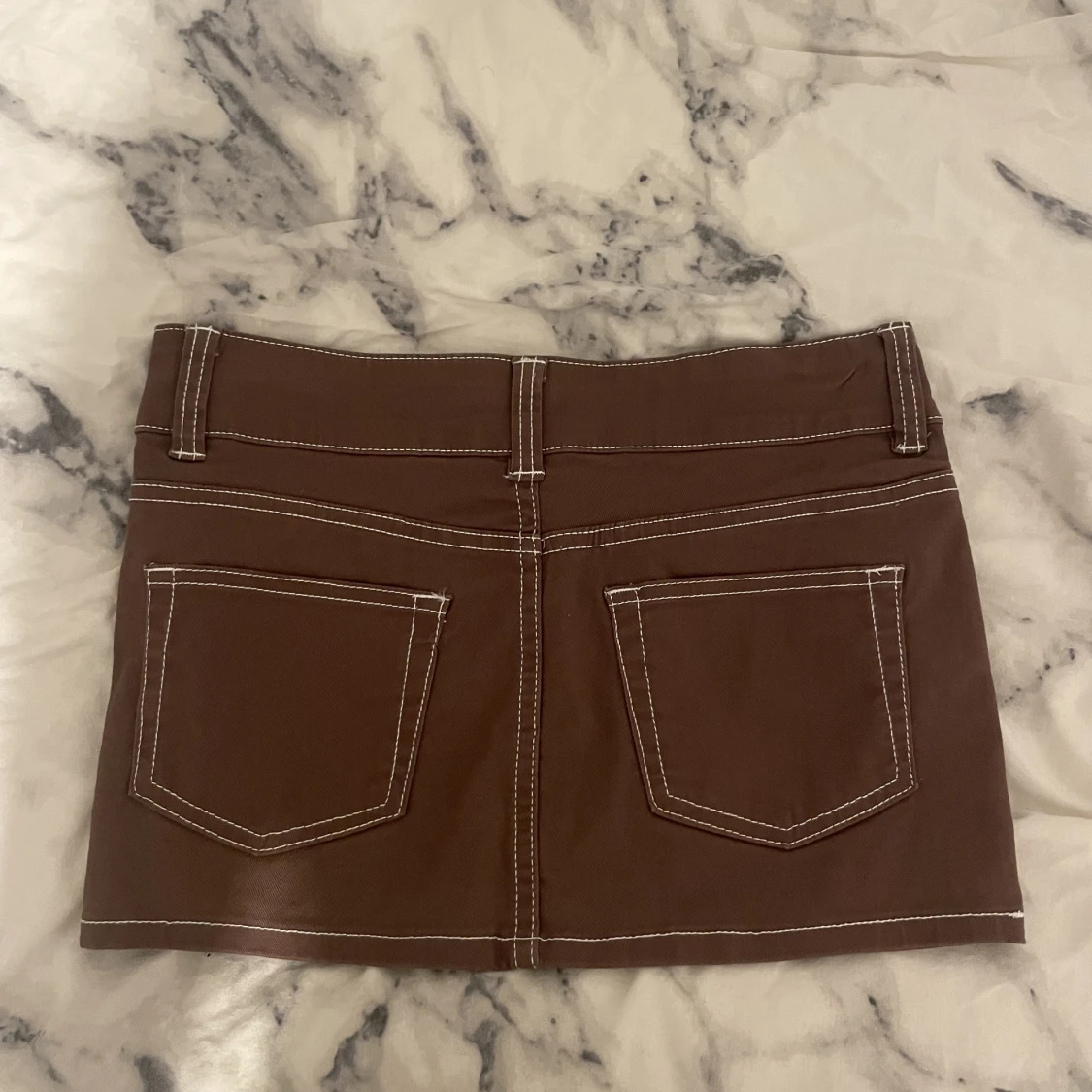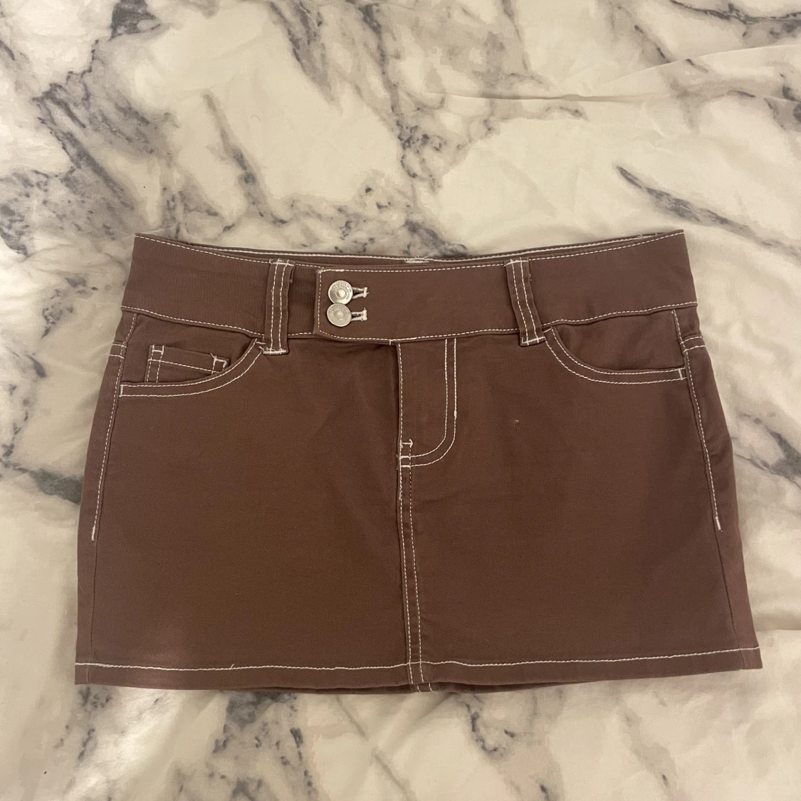 En brun lågmidjad minikjol i denim. Perfekt för höst outfits! Pris kan prutas!! (skriv privat för fler bilder)