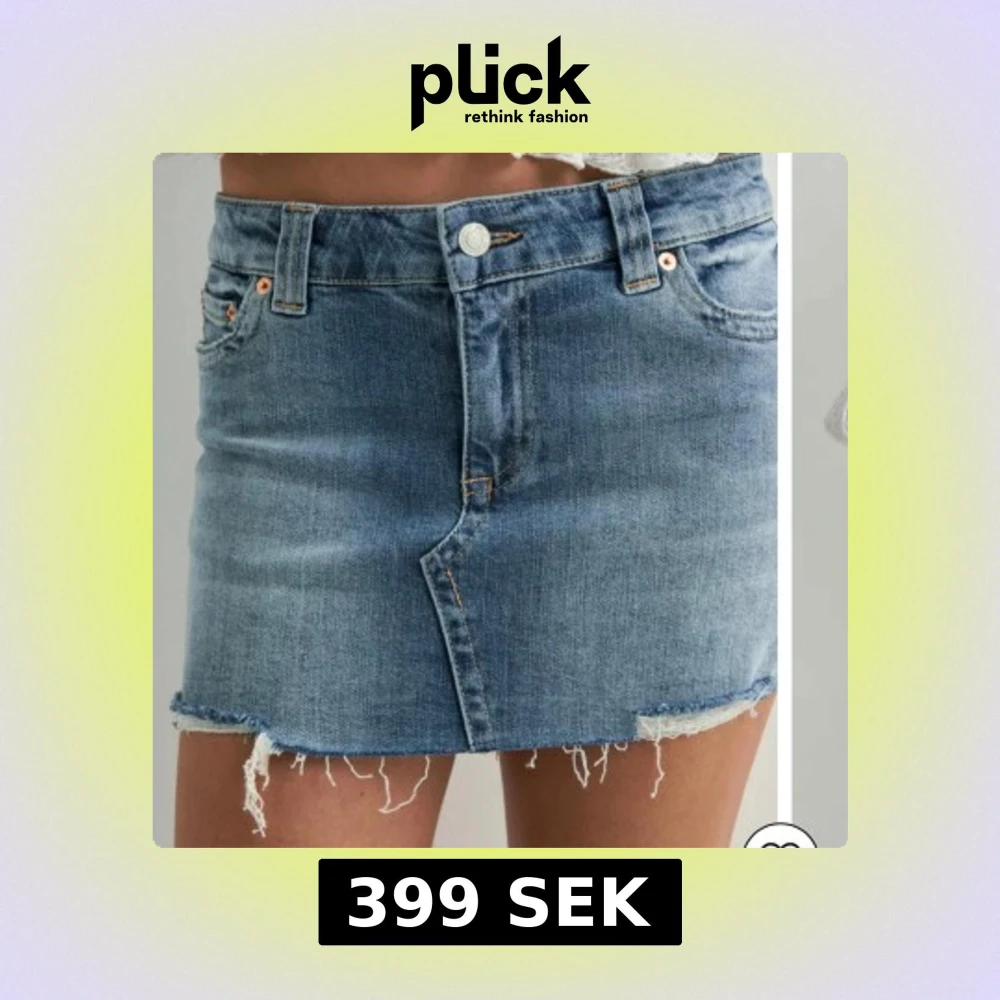 Snygg blå jeanskjol från Nelly med kort passform och rå, fransig kant nedtill. Klassisk femficksdesign, knapp och dragkedja framtill. Perfekt för dig som gillar en avslappnad och trendig stil. Nypris är 500 och är helt slutsåld! Min är använd max 5 ggr!