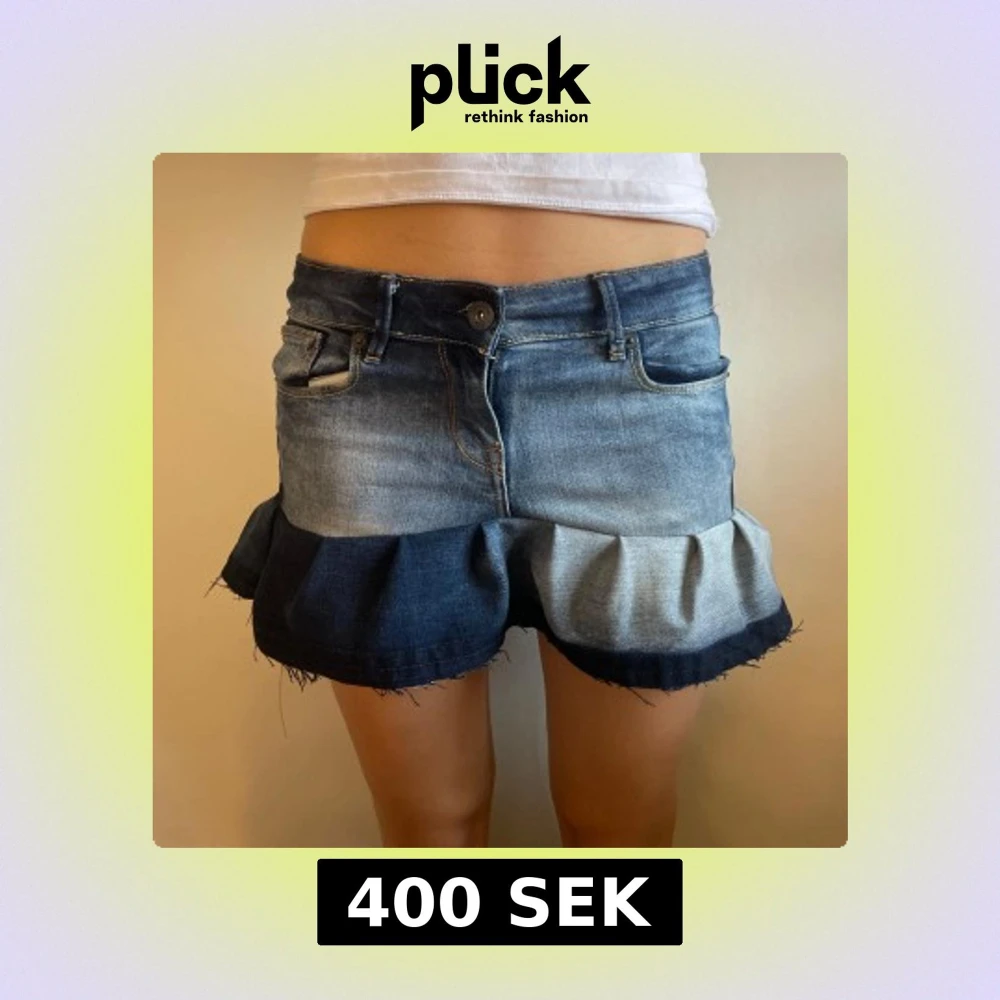 Volang jeanskjol med coolt mönster! Den är sydd hemma så ingen garanti att den är 100% perfekt men den ser ut exat som på bilden!