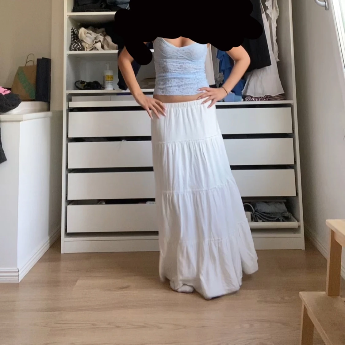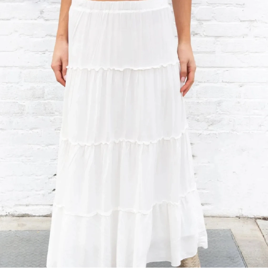 vit lågmidjad långkjol från brandy melville, helst slutsåld i butik. kjolen är i en one size men skulle säga att den motsvarar en xs-s. den ör inte alls genomskinlig💕