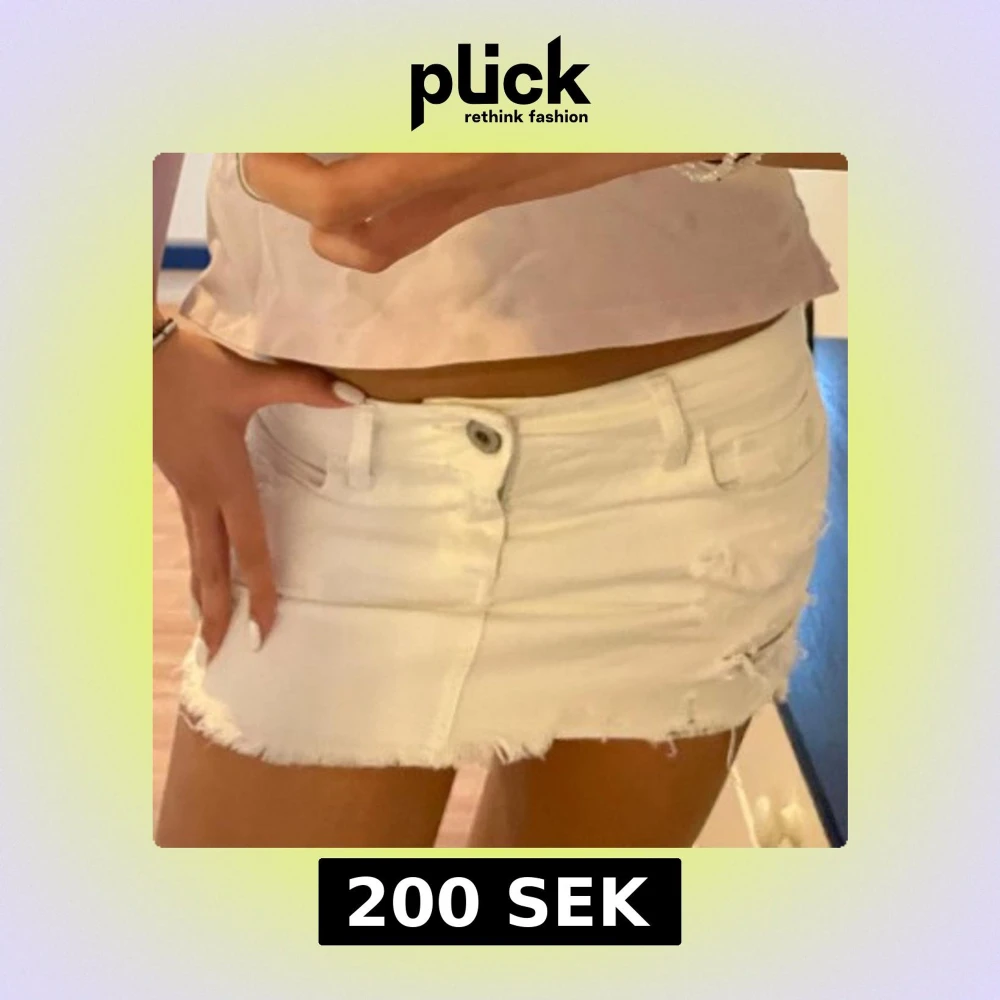 Snygg vit jeanskjol från Abercrombie med slitna detaljer och rå kant. Lågmidjat och i superfint skick!!❤️💕💕💕 Passar mig bra som brukar ha 32 eller 34 i storlek