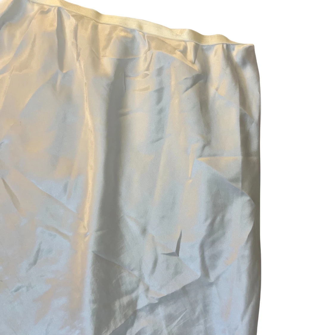 Elegant vit kjol i satin med en mjuk och glansig yta. Perfekt för en stilren och sofistikerad look. Kjolen har en enkel design utan extra detaljer, vilket gör den lätt att matcha med olika toppar. Längden är till knänen ungefär, beror på hur högmidjat man sätter den men även längden på dig såklart! Skulle personligen kalla det en midikjol! Pris kan diskuteras 💞