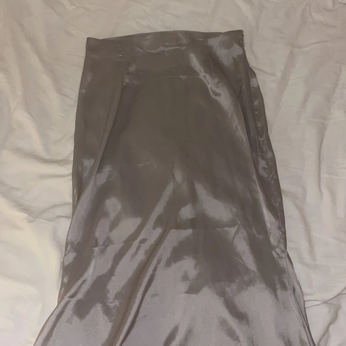 Jättefin satinkjol som aldrig använts eftersom den är för liten.