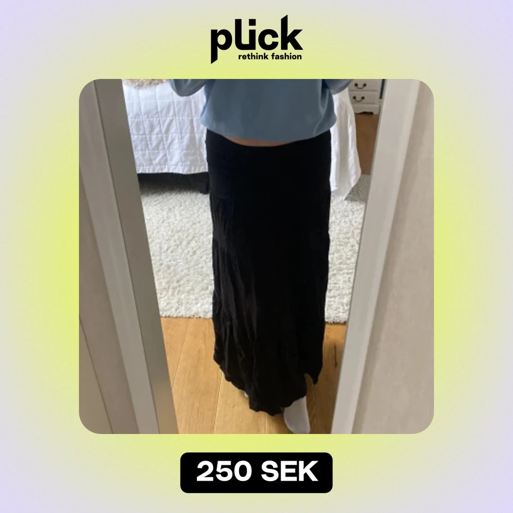 En svart långkjol🥰passar jättebra till sommaren🫶🏼 går även att ha som klänning💞vilket jag har haft🫶🏼