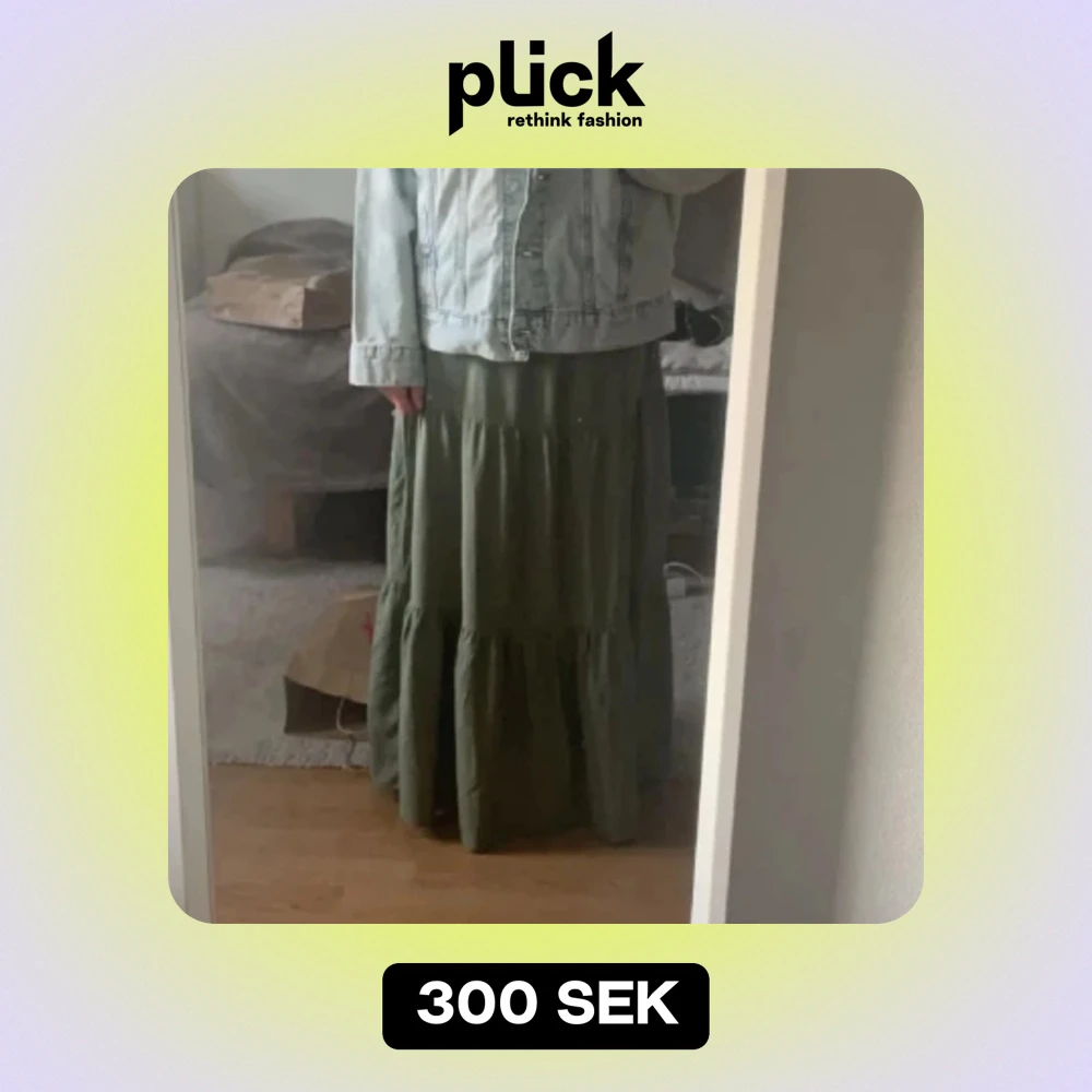 Grön lång kjol som passar mig som är ca 168. Den har ett band som går att knyta men jag brukar inte använda det.