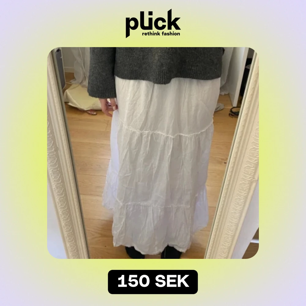Säljer denna långa vita kjolen. Det var ursprungligen en klänning men har klippt av överdelen, därav ser man resoren vid midjan (se bild 2). Inte alls genomskinlig vilket är något jag upplever att de flesta vita kjolar är💗Tror att den passar de flest