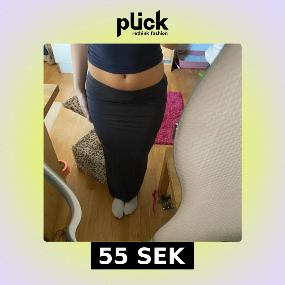 Säljer en mörkgrå långkjol med tight passform. Kjolen är gjord i ett stretchigt och mjukt syntetmaterial som sitter snyggt mot kroppen.