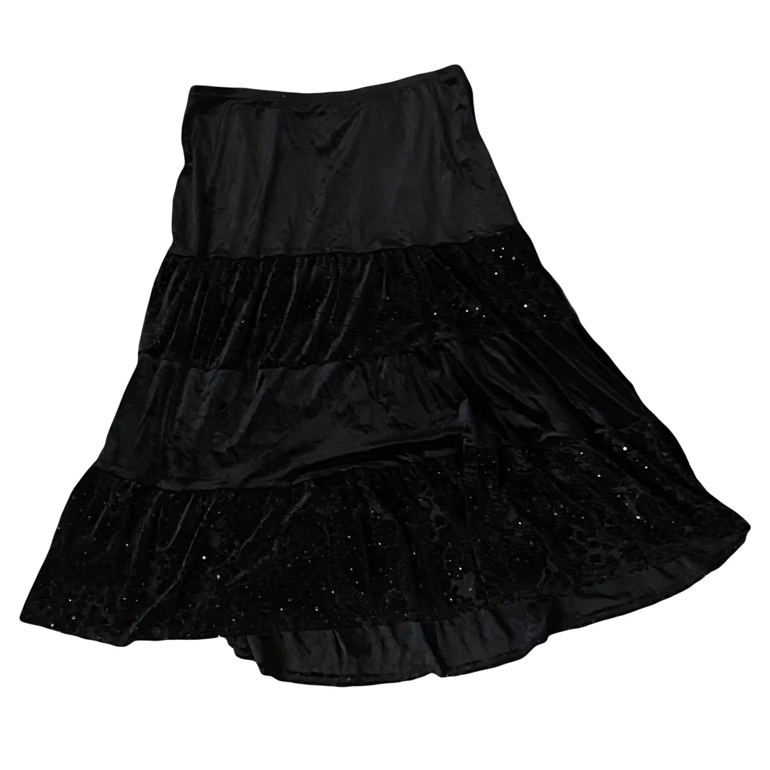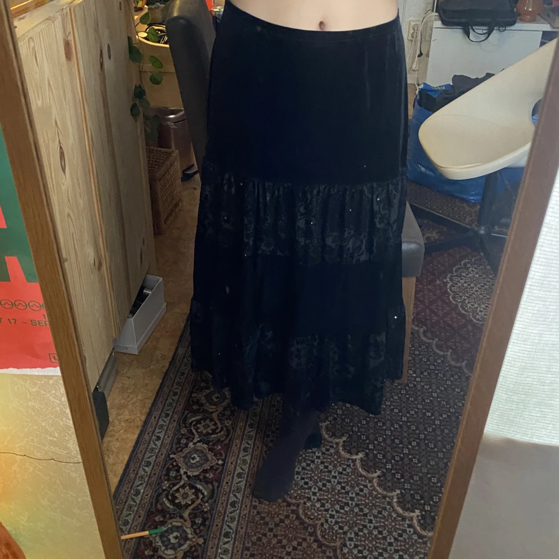 Fin svart kjol med lite paljetter. Min storlek är M men jag brukar säkerhetsnåla midjan så om man har en mindre storlek så kan man få det att funka. Kontakta mig om det finns frågor. Tar betalt via swish <3