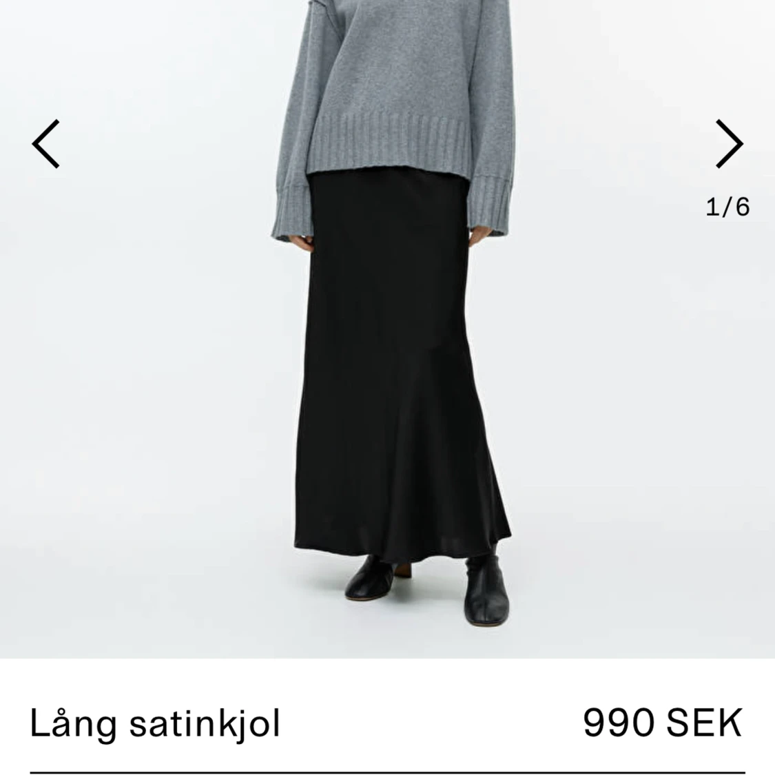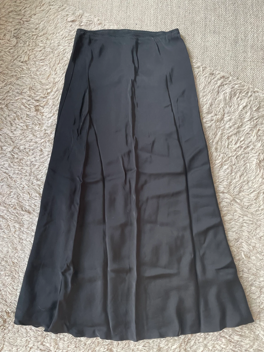 Satinkjol Använd 1 gång, inga tecken på användning Hitta här https://www.arket.com/sv_se/women/skirts/product.maxi-satin-skirt-black.1157074001.html