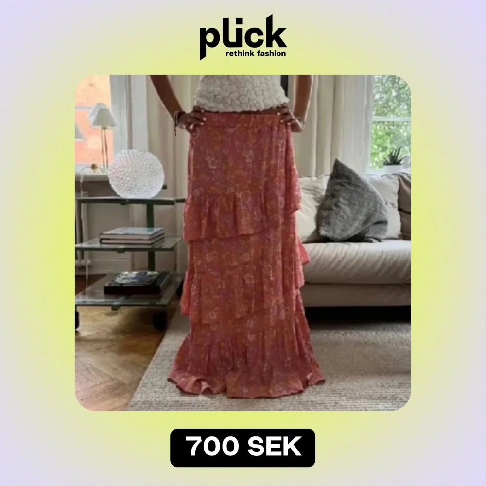 Säljer en jättefin lång volangkjol med jättefint mönster