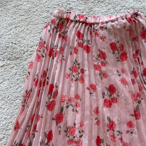 Plissera kjol från H&M med resår i midjan. Cirka 75 cm lång, slutar under knäna på mig som är kort. Använd sparsamt. Resåren i midjan har vridit sig, men det är något som går att stryka till med lite tålamod. Kan samfrakta.